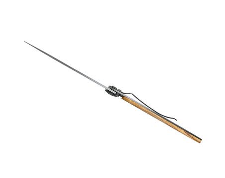 Ultra-light knife in 420 stainless steel, matte finish. Secure liner lock system decorated with fine laser engraving. Belt clip. Solid coralwood handle slab. Olive wood, known for its robustness and antibacterial qualities is a classic of cutlery. Widely acclaimed by its admirers for the beauty of its natural veins, each piece is unique according to the tree from which it was crafted, illuminating your Deejo with superb arabesques of beige, without fear of moisture or time