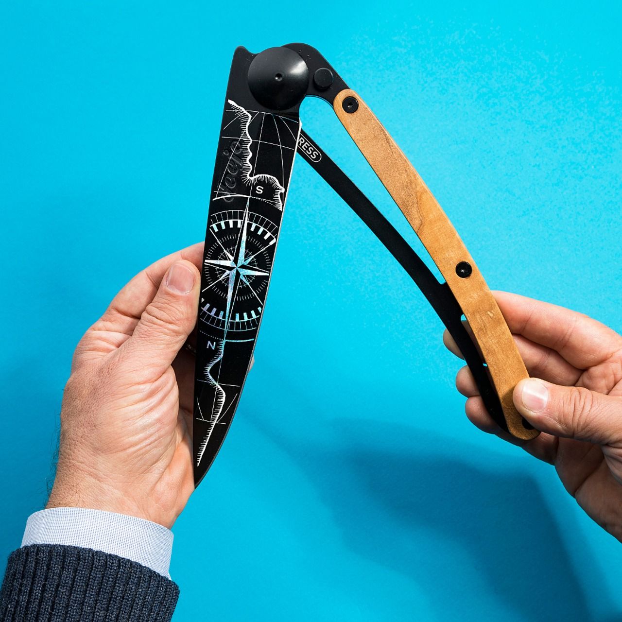 Impressive and solid, it possesses the same characteristics as a classic Deejo knife…oversized.