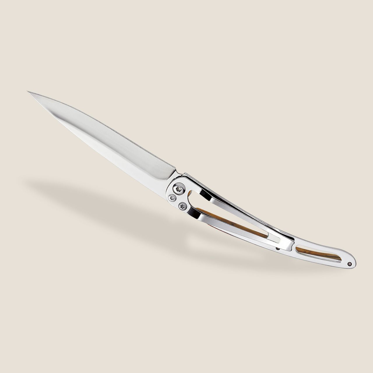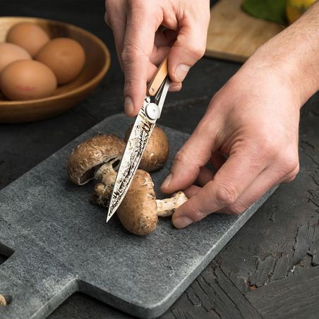 Ideal para cortar carne, pelar fruta o abrir un paquete, la navaja Deejo se puede utilizar en cualquier lugar y ocasión y aporta siempre un toque de elegancia.