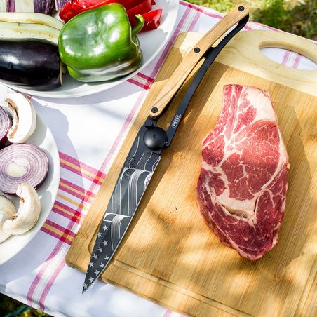 "Nuestra navaja de 390 g es la pieza Deejo ideal para las grandes ocasiones, ya se trate de un aniversario, la celebración de la jubilación o un obsequio a un amigo amante de la buena carne.